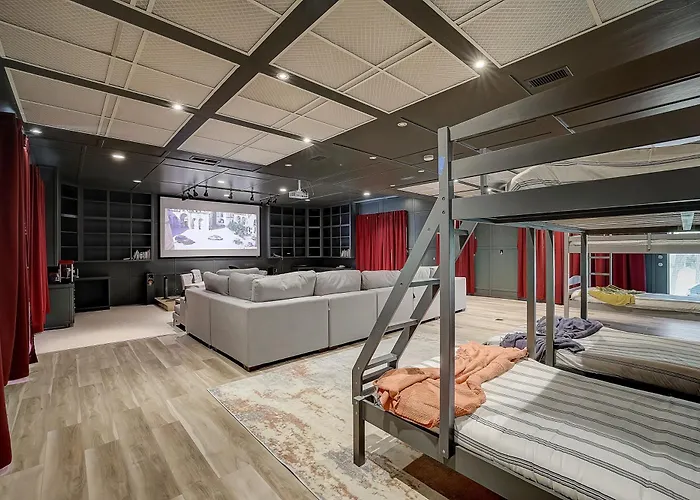 **Accommodations** at Dunlap Oasis are designed with relaxation in mind each room is generously sized, adorned with contemporary furnishings that create a warm and inviting atmosphere. This serene accommodation allows guests to unwind fully, offering the perfect blend of privacy and community spaces ideal for gatherings or family fun.